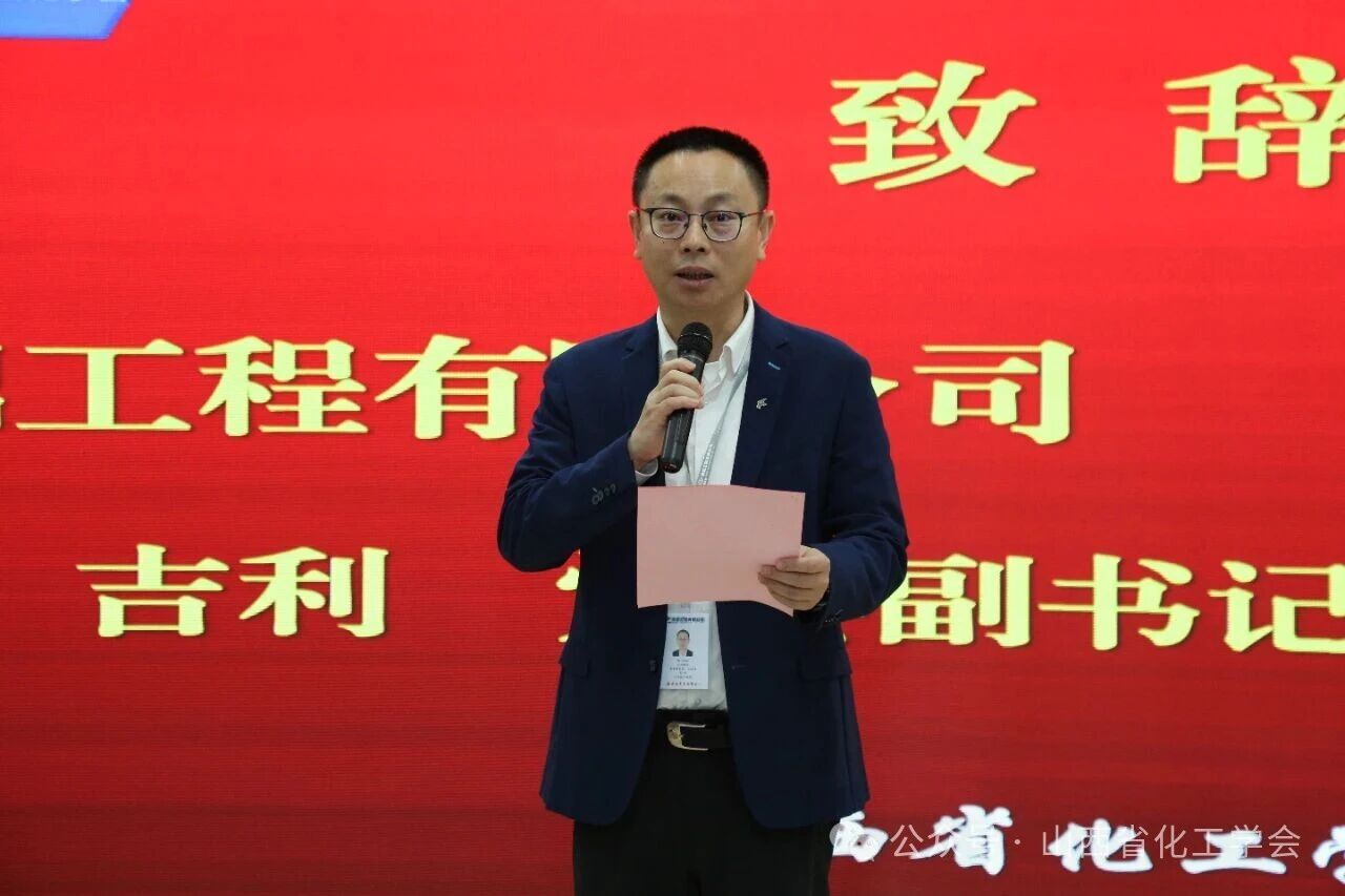 赛鼎工程有限公司党委副书记、董事、总经理 吉利为大会致辞。他代表赛鼎工程有限公司向各位领导、专家学者、理事同仁们及关心支持山西化工事业的各界朋友们致以热烈的欢迎和最诚挚的问候。向长期以来为山西省化工学会发展倾入心血,为山西化工产业转型升级贡献力量的全体同仁们致以最崇高的敬意。他讲到,公司作为学会的副理事长单位是学会发展的直接受益者,在学会的指导下可以更精准地把握行业趋势、了解行业前沿,在与各理事单位的协作中得以攻克一个又一个技术难关。期待通过本次会议各位同仁能够充分交流思想分享经验共同探讨。并预祝山西省化工学会八届五次理事会取得圆满成功,祝愿各位领导各位专家各位同仁身体健康工作顺利万事如意。